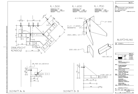 Main Plaza Leitdetail: Draufsicht + Schnitte: Ankerkonsolen