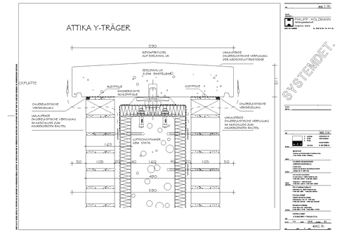 Main Plaza Leitdetail: V-Schnitt: Attika Y-Träger