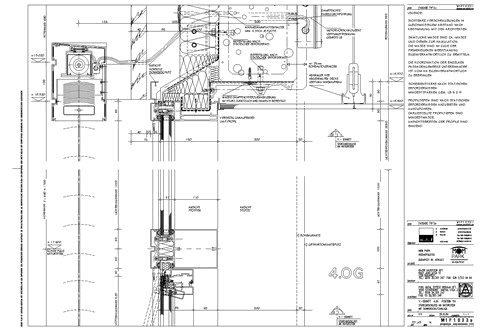 MOM Park Leitdetail: V- Schnitt Sturzanschluss an Naturstein mit Sonnenschutz-anlage