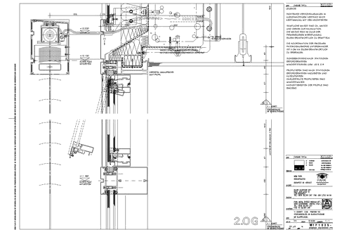 MOM Park Leitdetail: V- Schnitt Sturzanschluss an Glaskaltfassade mit Klappflügel