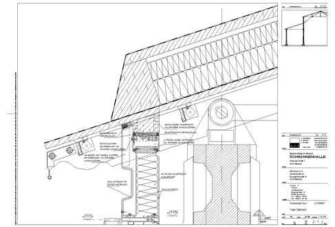 Schrannenhalle Leitdetail: V-Schnitt Traufe Satteldach