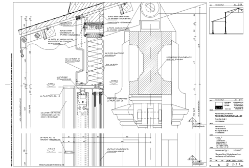 Schrannenhalle Leitdetail: V-Schnitt Fensterband Sturzanschluss Schiebeelement