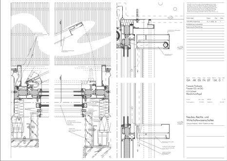 Campus, Frankfurt Leitdetail: Gebäude RuW Fassade Parkseite, H+V-Schnitt, Lochfenster Blendschutzflügel