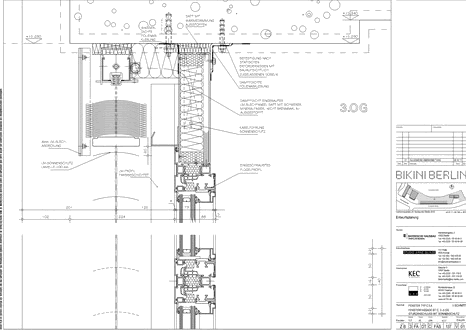 BIKINI BERLIN Leitdetail: V-Schnitt Sturzanschluss Lochfenster, Bauteil Bikini, Strassenseite