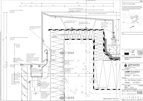 Sparkassen-akademie, Stuttgart Leitdetail: V-Schnitt Attika über Natursteinfassade